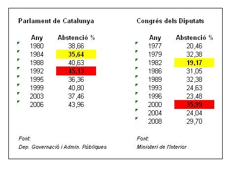 Nota: les dades històriques d’abstenció les he obtingut de la web del Departament de Governació i Administracions Públiques i de la del Ministeri de l’Interior.