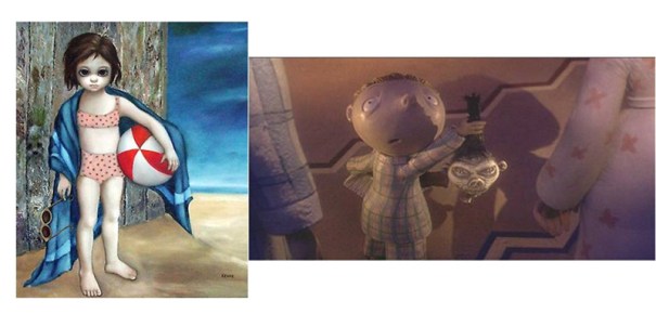Però Tim Burton té també dèria per una pintora americana anomenada Margaret Keane. És una artista pop que ha creat tot un marxandatge al voltant de les seves creacions. Podem veure, per exemple, nines amb els seus enormes ulls tristos que tant caracteritzen la seva obra. Tim Burton, comprador de moltes obres d’aquesta artista, expressa la seva influència sobretot en les pel·lícules d’animació.