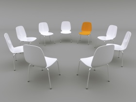 El primer que em va deixar sorpresa va ser el blanc gairebé insuportable de les parets, del terra i dels mobles. L’efecte era encara més gran per culpa d’unes amplies finestres per les què entrava la llum del migdia d’una jornada insultantment primaveral. Vuit cadires blanques i una taronja estaven distribuïdes formant un cercle perfecte. La meva puntualitat va provocar que arribés la primera. Aquest fet em va permetre escollir la que quedava tot just davant de la porta. Volia veure qui entrava a la sala per calmar una mica els nervis que em clavaven a la cadira.