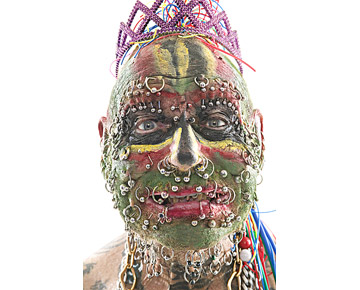 L’individu de la fotografia té ADN humà i és un britànic que es diu John Lynch. No es tracta de cap alienígena d’aquests que vénen per estudiar-nos o per sortir al Sálvame amb Jorge-Javier Vázquez. La seva principal característica és la de foradar-se el cos. En total té 241 piercings (151 al cap i al coll). Per què la gent fa aquestes coses? Ho desconec. Una vegada vaig sentir a un entusiasta dels piercings afirmar que el dolor que provoquen li recordava que tenia cos. No ho sé… però, posats a escollir, m’estimo més que sigui el plaer el que em recordi que tinc cos. Suposo que és qüestió de gustos.