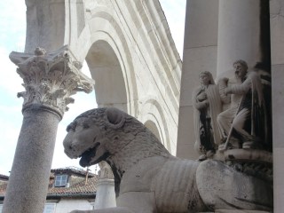 | detall del portal romànic de l’església de Sant Lovro,o de Sant Llorenc, a Trogir – Croàcia |