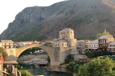 El magnífic i simbòlic pont d’unió de les tres cultures es va refer amb ajut de la Unesco i es va reinaugurar l’antic pont que havia estat construït pels arquitectes turcs cinc segles abans.