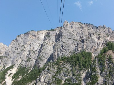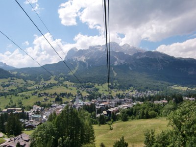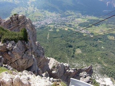 Després de dinar encara ens esperen emocions, ja que decidim de pujar amb un doble telefèric o funivia a un dels miradors que dominen la vall, on hi ha el Refugi de Faloria, a 2123 m.