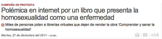 Quizá te preguntes por qué te escribo. Te he conocido hoy porque has sido la estrella de las redes sociales. Supongo que tu editor tarde o temprano te dirá que en España El Corte Inglés ha retirado de la venta tu libro COMPRENDER Y SANAR LA HOMOSEXUALIDAD. En él tratas la homosexualidad como una enfermedad, pero tengo la impresión que el colectivo gay no está muy contento contigo. De hecho, están muy enfadados ya que no se consideran enfermos y, en consecuencia, tu terapia carece de sentido . No voy a intentar convencerte de que la homosexualidad no es ninguna patología. Sin embargo, me gustaría que recordases lo que explicas en tu libro: