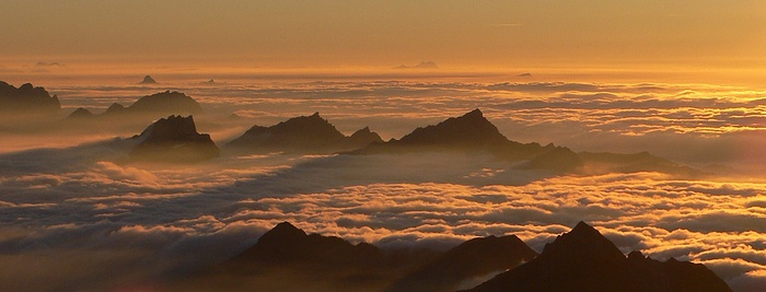 Des d’aquesta plataforma vull desitjar-vos a tots un Millor Any Nou 2012, que ara tot just despunta, i com el simbolisme de la foto ens mostra, desitjo que la llum del nou any faci que les nostres il·lusions, les nostres esperances i els nostres esforços facin remuntar els ànims decaiguts per tanta depressió i els facin surar com aquestes muntanyes per damunt de les boires del pessimisme latent…