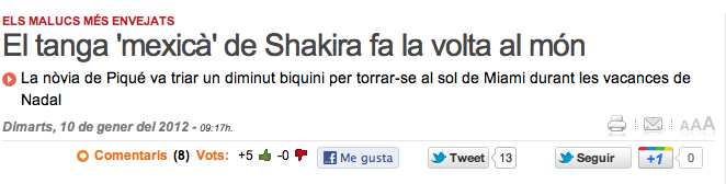 Bon dia Albert! Si et fixes el comentaris sobre el tamany del tanga de Shakira els fan dos homes, no dues dones. Tot i valorar els comentaris en clau d’humor, és un pràctica que habitual barrejar temes seriosos amb frivolitats, i quasi sempre referides a dones. L’encert de l’Àlex a l’hora de redactar el post per il·lustrar el mal exercici d’alguns periodistes es va transformar en una frivolitat més, on la valoració d’una dona passa només pel seu aspecte físic. Us heu parat a pensar quin benefici en treu la Shakira de la relació amb en Piqué i per “ende” amb el Barça i el món futbolístic? (sense posar en dubte l’amor que es professen els dos,..).