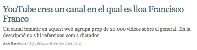 La informació que aquest canal de vídeos ofereix de Francisco Franco prové de l’enciclopèdia participativa Wikipedia, en la qual sí que es refereixen a Franco com a dictador, cosa que no passa en el resum que hi ha en aquest canal de YouTube, empresa propietat de Google. Aquesta breu descripció del general colpista s’hi refereix, en canvi, com “general espanyol”, “líder vencedor” i “líder autoritari espanyol”. A la versió anglesa de Wikipedia, també hi figura la paraula ‘dictator’.