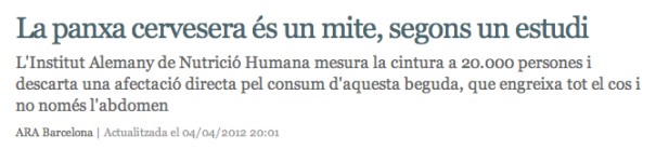 “Les panxes cerveseres dels alemanys podrien haver de canviar el nom si fem cas d’un estudi de l’Institut Alemany de Nutrició Humana que ha mesurat la cintura a 20.000 persones i els ha qüestionat sobre el seu consum de cervesa.