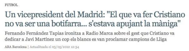 Le escribo porque su afirmación de que Cristiano Ronaldo se sube las mangas a golpe de butifarra me tiene desorientado. Llevo media hora intentándolo y le juro que no me sale. Me he quedado muy relajado, especialmente cuando pienso en el rostro de más de un madridista, pero no he logrado subirme la manga. Sin embargo, me gustaría saber en qué consiste exactamente su técnica, que me imagino que tiene una difícil ejecución.