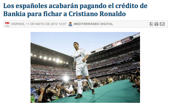 Ja que el govern injecta pasta gansa als bancs, però de facto no els nacionalitza, perquè no adquireix més del 50% de la seva propietat, al menys podríem exigir que es nacionalitzés al Cristiano Ronaldo. Per primera vegada, una persona seria propietat de tota la societat espanyola… i no al revés. Què podríem fer amb aquest noi? Jo tinc una sèrie de propostes: