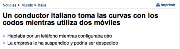 El más difícil todavía consiste en hablar por un teléfono mientras se configura el otro y se toma las curvas con los codos”.