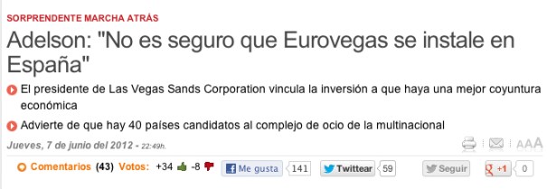 Quin tip de riure m’he fet! Ha dinat en els millors restaurants, ha pres el sol d’Espanya, ha passat unes grans vacances fent el “Tour del putiferio”, ha posat de genolls a tots els polítics i ara diu que “no es seguro que Eurovegas se instale en España”. Si us plau, no puc deixar de riure. Bravo, Mister Adelson! You’re a fucking genius! Un milionari calientabraguetes! No sé com es diu això en anglès (cock-teaser?).