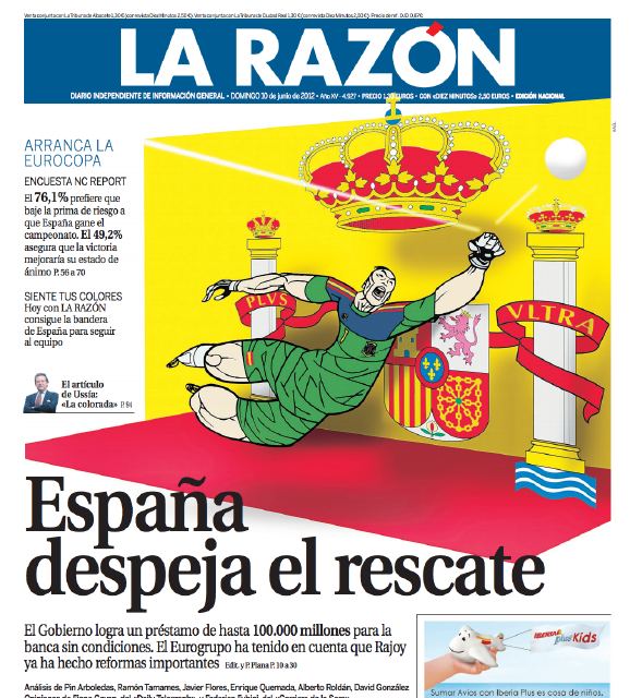 Parafraseando a Guardiola, podríamos decir que eres “el puto amo” del periodismo cavernícola. Aquel capaz de mezclar las peores esencias de la derecha rancia y casposa que tanto daño han hecho a este país y fabricar, cual bruja en un afterhours de aquelarre, la pócima que facilita que se confunda la opinión pública con la opinión publicada. Sólo alguien sin dignidad periodística es capaz de dibujar a un Casillas con pinta de portero de discoteca despejando un balón convertido en la metáfora del rescate y después asegurar que “el Gobierno logra un préstamo de 100.000 millones para la banca sin condiciones”. Sólo te faltaba un toro, un torero, la Pantoja y Rajoy disfrazado del Cid Campeador.