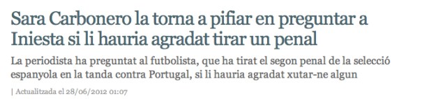 Per això treballa a Telecinco i no a mitjans més seriosos.El seu error ha estat deixar-se usar mediàticament per la seva cadena, allò del petó va ser explotat fins a l’infinit. Un altre error de Sara Carbonero va ser que sent periodista va acabar convertint-se ella en notícia quan la seva feina és explicar el que succeeix sense ser-ne protagonista.