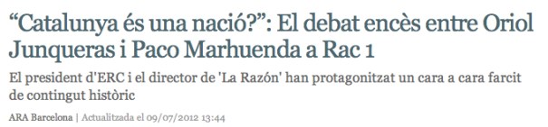 Com que el debat tractava d’enfrontar dues idees diferents sobre la història de Catalunya i Espanya, la catalanista d’en Junqueras i l’espanyolista de Marhuenda. Ja que parlem d’història si aquest debat hagués estat una justa medieval amb els cavallers Oriol, el cavaller de Sant Vicenç, i sir Paco, cavaller de La (sin)Razón carpetovetònica que va acabar amb sir Paco descavalgat, desarmat i vençut.