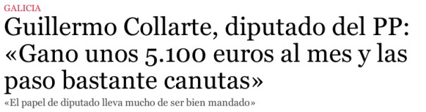 Quan la immensa majoria dels ciutadans ho està passant tant malament, i en part gràcies a la gestió del seu partit, és de molt mal gust el que fa el “senyor” Guillermo Collarte de refregar-nos pels morros el que “guanya” i a sobre presumir de tenir vicis cars dient-nos que a ell amb aquesta quantitat no li arriba. Són uns impresentables!