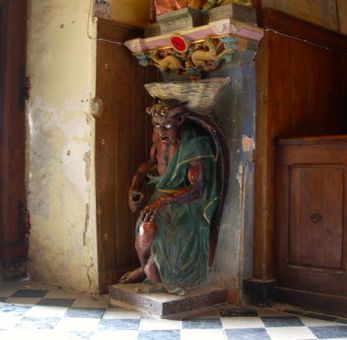 un mal presagi d’allò que han de trobar aquells que ingressin, tot esperant trobar un lloc de recolliment…, i on, a més, just a l’entrada et rep una figura inquietant del dimoni Llucifer…