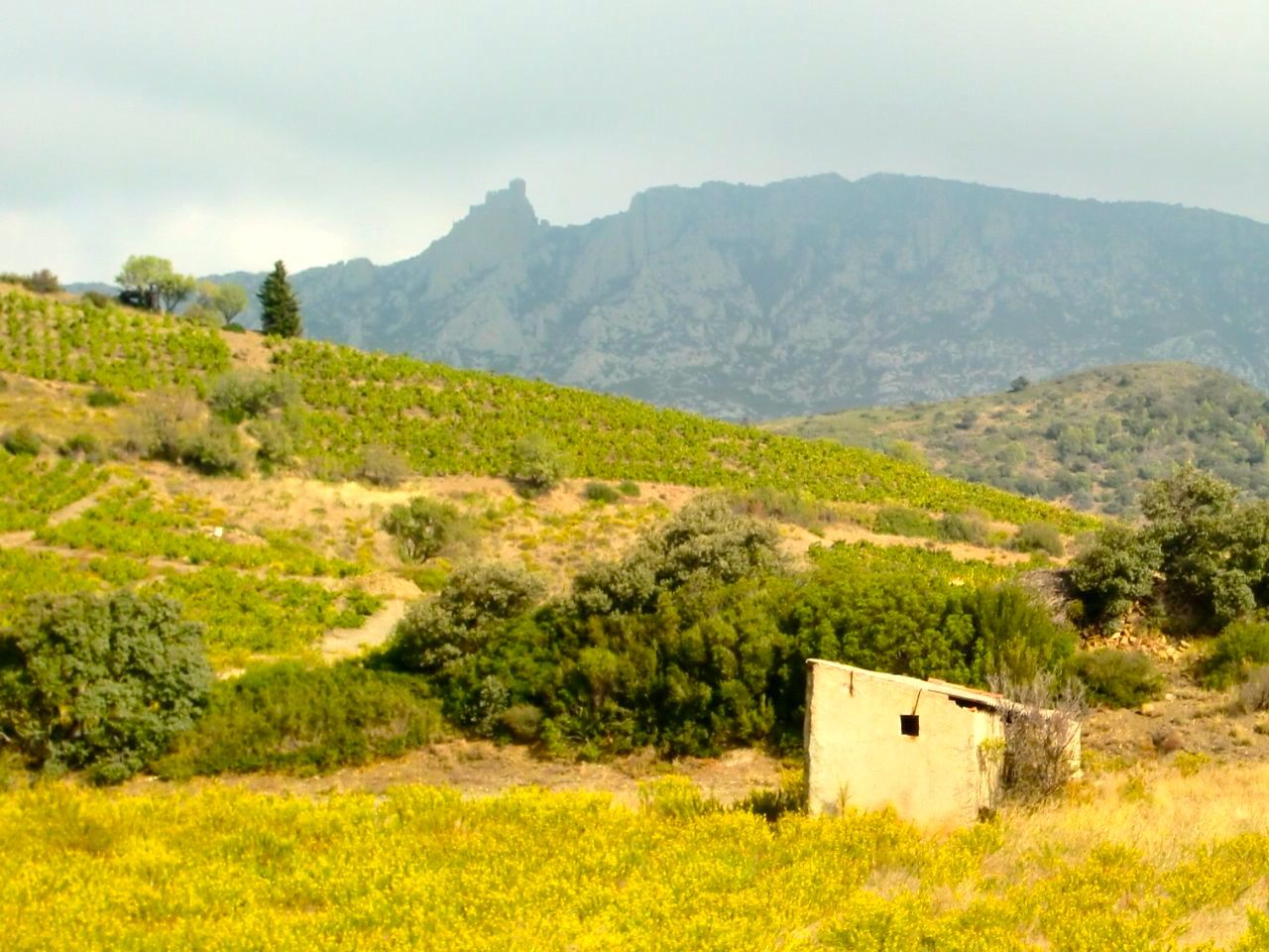 Pel camí podem veure les vinyes com comencen a groguejar al peu mateix del castell de Quéribus, dalt la carena…