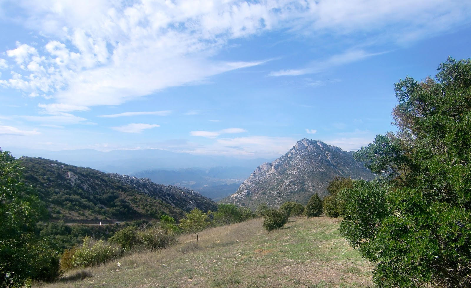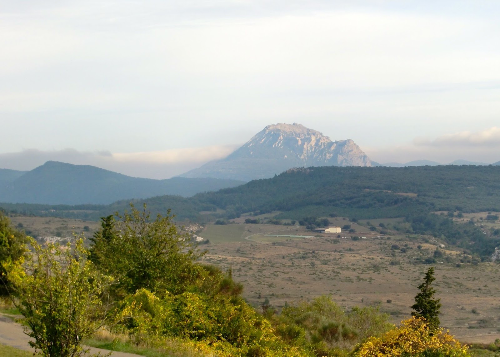 Marxem d’aquest indret tot contemplant la visió entre bromes, del lloc escollit per les previsions catastrofistes, per refugiar-nos i preparar-nos per la fi del món que s’acosta…, el Pech de Bugarach