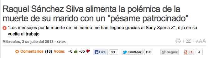 Per a tots aquells que no llegiu revistes del cor us he de dir que aquesta noia va perdre el seu marit en circumstàncies bastant estranyes. Després del dol i dels diversos reportatges que li ha dedicat la premsa groguenca ha reaparegut en la petita pantalla agraint els missatges rebuts, atenció, en el seu Sony Xperia Z. Molt bé!!! Amb un parell!!! La seva parella, que és a la caixa des de fa tan sols un mes i mig, li serveix per posar preu al seu dolor. Ai, ja ho deia el meu avi: al gos mort, treu-lo de l’hort.