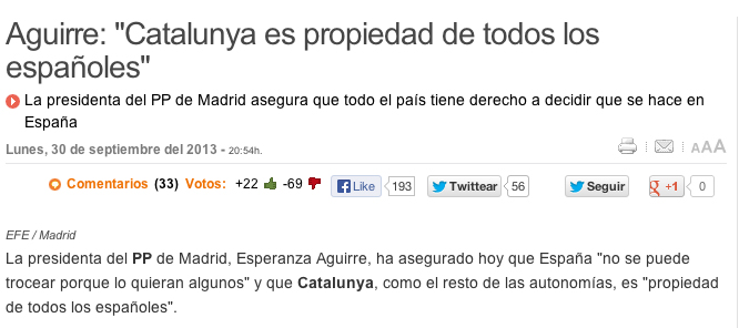 Cuando afirmas que “Catalunya es propiedad de todos los españoles” lo que realmente estás sugiriendo es que los catalanes somos propiedad de todos los españoles. No existe otra interpretación más que esta. Somos como una nevera, como un televisor o como el tesorero de un partido: objetos que se pueden comprar y que generan credenciales de posesión. Queréis el continente, pero también el contenido. Y lo queréis por derecho de conquista. Tenéis en el ADN el gen colonizador. Poco importa que seáis el país del que más territorios se han independizado, poco importan vuestras múltiples derrotas, el orgullo patrio herido, las postguerras con aromas de venganza. Lo que de verdad queréis es sentir que nos poseéis, que somos vuestros súbditos, sin derecho a pensar de un modo diferente.
