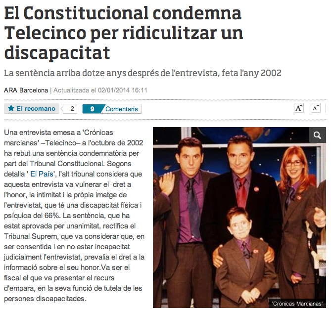 No seré jo qui et recordi l’època en la què eres un gran comunicador. Eren temps de creativitat radiofònica, del senyor Casamajor, Ràdio 4, la SER, La bisagra, La ventana… Anys després va venir Crónicas Marcianas i, tot i que a l’inici vas ser el revers de la porqueria que feia el Pepe Navarro, de mica en mica vas embrutar el teu prestigi. Tanmateix, vas ser lliure d’escollir aquell camí i el teu compte corrent ho va agrair. Ja sé que la televisió no és cap ONG, ja sé que parlar d’ètica en aquest mitjà és quelcom passat de moda, ja sé que ningú pot donar lliçons de res però, què vols que et digui, quan he llegit la notícia de la sentència del TC m’he alegrat.