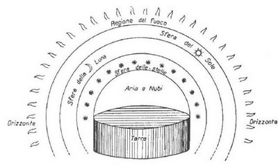 Esquema de la cosmologia d’Anaximandre. Malgrat la pluralitat de substàncies i de localitzacions, segons Anaximandre, tota la realitat conflueix en una única substància o origen