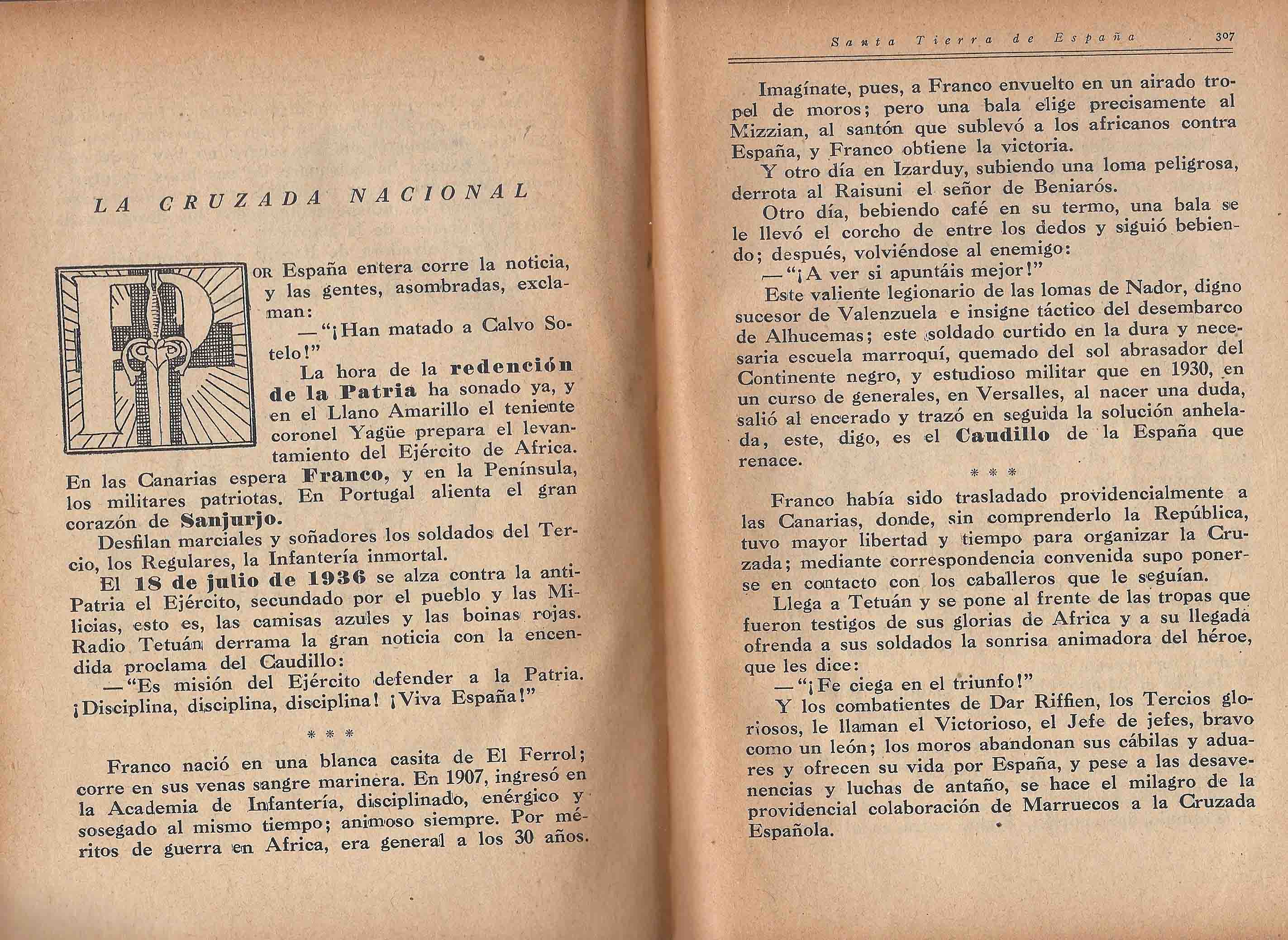 El 18 de julio de 1936 se alza contra la antiPatria el Ejército, secundado por el pueblo y las Milicias, esto es, las camisas azules y las boinas rojas.