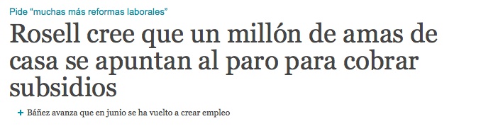 Si gaudissis d’un mínim de sensibilitat social t’adonaries que moltes de les dones de les què parles són mestresses de casa perquè en el seu moment van ser expulsades del sistema acadèmic i del sistema laboral. Eren elles las que s’havien de quedar a casa per cuidar dels fills i dedicar-se en cos i ànima a les tasques domèstiques. Han estat dones enganyades per la tradició, pel masclisme carpetovetònic que molts com tu porteu a la sang. Tu, el rei de la patronal, de la moderació salarial, de l’abaratiment dels acomiadaments, de les retallades socials, de la pèrdua dels drets dels treballadors… Tu, l’amic de la FAES… Tu, el que guarda silenci quan sap que la majoria d’empreses de l’IBEX 35 tributen en paradisos fiscals… Tu, que et sembla genial que algunes empreses facin ERE’s quan ni tan sols tenen pèrdues… Tu, que et rentes metafòricament el teu cul de nen pijo amb els convenis col·lectius… Tu, tens els pebrots de desplaçar la culpa de la crisi a les mares que amb el seu esforç diari han permès que aquest país sigui alguna cosa més que una monarquia bananera? Vinga, maco, menys conferències a la caverna i més treballar.