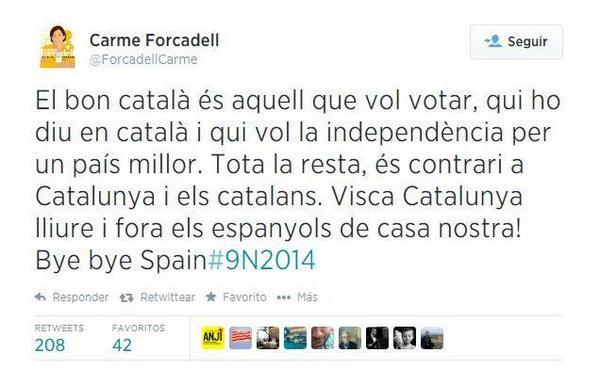 Ahir circulava per la xarxa una suposada piulada de la Carme Forcadell en format jpeg. I dic “suposada” perquè, com a piulada, gaudia d’un petit defecte: li sobraven 103 caràcters. Tot i que hi ha aplicacions que permeten escriure més de 140 caràcters (TweetBeeg, Twishort o TallTweets), no cal ser Grissom per veure que el to del missatge i el fet que aquesta piulada no aparegui al timeline de la Carme Forcadell, fan sospitar molt de la seva autoria.