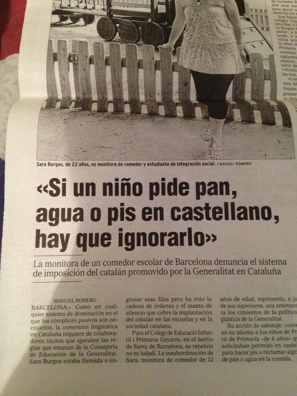 Quin poder té la immersió lingüística! És veritat, la meva filla és incapaç de pronunciar una sola paraula en castellà. Tot i que veu Bob Esponja, Dora la Exploradora, Los pingüinos de Madagascar i tantes altres sèries en castellà i que a l’escola estudia castellà, llegeix en castellà i escriu en castellà, no té ni la més remota idea de castellà. Passeja pels carrers de Barcelona, veu la majoria de rètols en castellà i es queda en la inòpia. Veu les portades de El País, l’ABC, La Razón, El Mundo en els quioscs i els mira com si fossin coreà. Si canvia de canal i es troba TVE1, TVE2, Tele 5, Antena 3, La Sexta o Cuatro té la mateixa sensació. Estic segur que si, per circumstàncies terribles de la vida, el seu destí estigués a Quintanilla de Onésimo seria incapaç de dur una vida normal. Si demanés al col·legi fer un pipi, en comptes de dir pipí, els professors serien incapaços d’entendre res. L’afàsia és una malaltia que afecta a tot el professorat, més inclús que la ignorància i la intolerància. Pobrissona. Me la veig al bell mig de l’aula, amb la bufeta a punt d’esclatar, intentant pronunciar correctament el mot pipí. Suposo que és la mateixa sensació que experimenta qualsevol locutor espanyol quan ha de dir Cesc o Artur Mas sense que soni a Sex o a Ártur.