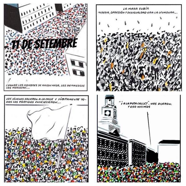 El pitjor que li pot succeir a qualsevol pintor, escriptor, periodista, cineasta o dibuixant que vulgui analitzar la realitat és veure’s afectat pel virus dels prejudicis. Els prejudicis són com uns prismàtics que te’ls poses al revés. En comptes de veure els detalls, obtens una imatge allunyada i distorsionada. Això exactament és el que ha experimentat el dibuixant Andrés Rábago, talment dit El Roto. En les manifestacions del 15M “la masa subía. Miseria, opresión y desigualdad era la levadura”. En canvi, en l’11 de setembre, “cuando los hombres se hacen masa, los demagogos los hornean”. Doncs això, demagògia. I molta. Teories que només admeten un punt de vista perquè si no tremola tota la teoria. Anècdotes elevades a l’altar de les categories. Tertulians omnipresents en favor de la causa. Apocalipsis de totes les formes i colors. Amenaces, insults, menyspreus… Doncs no, quan els homes (i les dones) es fan massa és perquè ja no suporten més que els facin invisibles, muts, inexistents. I s’han de fer veure, i s’han d’ajuntar, i han de dir basta. I ni un milió de pintamones ho pot aturar. I ni una massa de polítics pocasoltes, de tertulians llepaculs i d’institucions manipuladores tenen força per distorsionar la realitat. Perquè la realitat és la que és, no la que els teus prejudicis et diuen que és. Andrés Rábago: eres un fraude. No sirves. Tu capacidad de análisis de la realidad está contaminada. Huele a detritos. Llevas demasiado tiempo adormeciendo tu cerebro con la autocomplacencia. Sal a la calle, a esa calle que crees conocer. Pero no a la Gran Vía madrileña. A la barcelonesa. A la Gran Via de les Corts Catalanes. Date una vuelta por el Born. Habla con la gente. Contempla las estelades en los balcones y pregúntate el porqué. Vete a un mercado. Pero no a uno de Vallecas. Pasea por las paradas de la Boqueria. Y habla. Habla mucho con las personas. Empatiza con lo que dicen. Haz tabula rassa de lo que lees en la prensa madrileña, de lo que dicen los Monagos y Cospedales de este mundo absurdo e injusto. Estoy seguro que, después de un tiempo, te darás cuenta de que lo tuyo no son contradicciones. En el diccionario de la RAE lo definen como ridículo. Dale la vuelta a los prismáticos y observa el detalle.