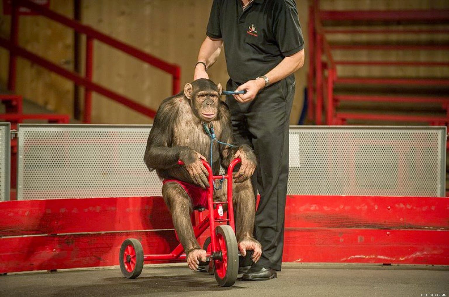 Ja hi tornem a ser. Com que els éssers humans també som animals i als altres animals “els fem servir per menjar” i per a d’altres “pràctiques no gaire intel·ligents” doncs cony, fem-los servir també per fer bajanades al circ i de passada mostrem a la quitxalla com d’inhumana pot arribar a ser la humanitat. Total, ja no ve d’aquí. A més, aprofitem per colar això de “treballar amb respecte amb els animals” i “compartir espais de joc” i encara semblarà que fem un favor al món. No ho sé, escoltin, potser tinc l’univers mal entès, però posaria la mà al foc que l’hàbitat més adient per un lleó, un elefant, un tigre, un cavall, una euga, una oreneta o una polla d’aigua, no és pas viatjant en una caravana farandulera amb trapezistes, faquirs, pallassos i senyores barbudes.
