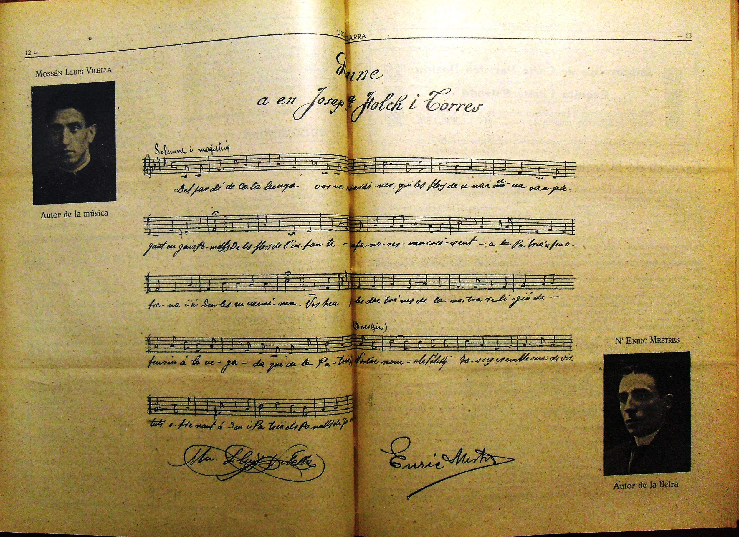 Himne compost com a dedicatòria dedicatòria de Folch i Torres per la seva visita a Mollerussa 15 de maig de 1922. Revista Urgell-Segarra el 4 de juny de 1922. Fotografia Francesc Rebolledo