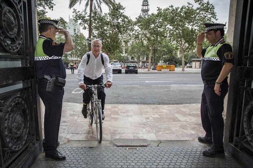 Així, Joan Ribó, amb bicicleta i les parets de l’ajuntament de València de vidre, ha anat en contra de les paraules de Josep Pla: “en aquest país gairebé tothom tendeix una mica a la suficiència i a la fatxenderia”.