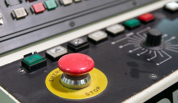Polsador d’aturada d’emergència (botó gran vermell al centre de la imatge). Foto de Maik Meid, Flickr