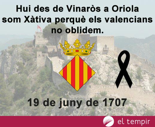 El 19 de juny de 1707, l’exèrcit del borbó Felip V, durant la guerra de Successió, van saquejar i incendiar la ciutat de Xàtiva. Han passat 308 anys, i Ateneu Popular de la ciutat ha fet la crida de penjar…